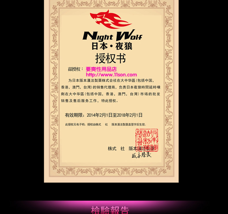【產品名稱】:日本Night woif【夜狼】女用性事增強凝露【配料】:純水、丙二醇、薄荷醇、L精氨酸、叛乙基纖維素、尼泊金甲醋等【儲藏條件】:陰涼幹燥處保存【使用方法】:1.建議在房事前5-10分鍾使用,取1-2滴凝膠塗抹于陰蒂等敏感區域,5分鍾後不明顯的話,可再取這量進行塗抹因人而異。2.塗抹于女性私處後,用指腹打圈的方式按摩,促進其完全吸收護幾分鐘後即可。3.使用後請將瓶蓋蓋緊。